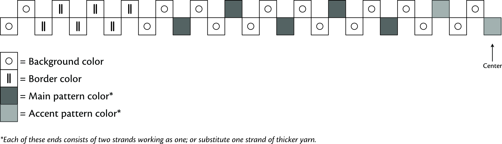 - Weft yarn: Same as warp (background color).